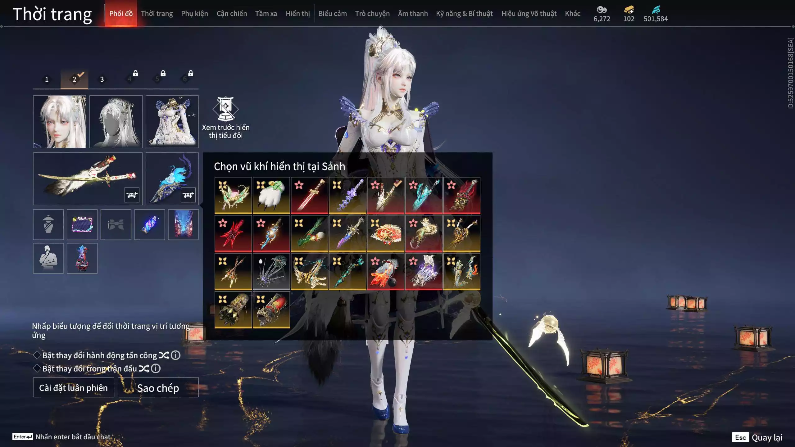 10 Vũ khí đỏ: Kiếm Thiếu Dương, Thái Đao Linh Hồ, Tinh Đế, Đại Đao Lang Vương, Kích Phi Tướng, Thương Linh Tê, Song Long Chầu Nguyệt, Pháo Thiên Phạt, Ánh Thanh Thiên, Long Tước