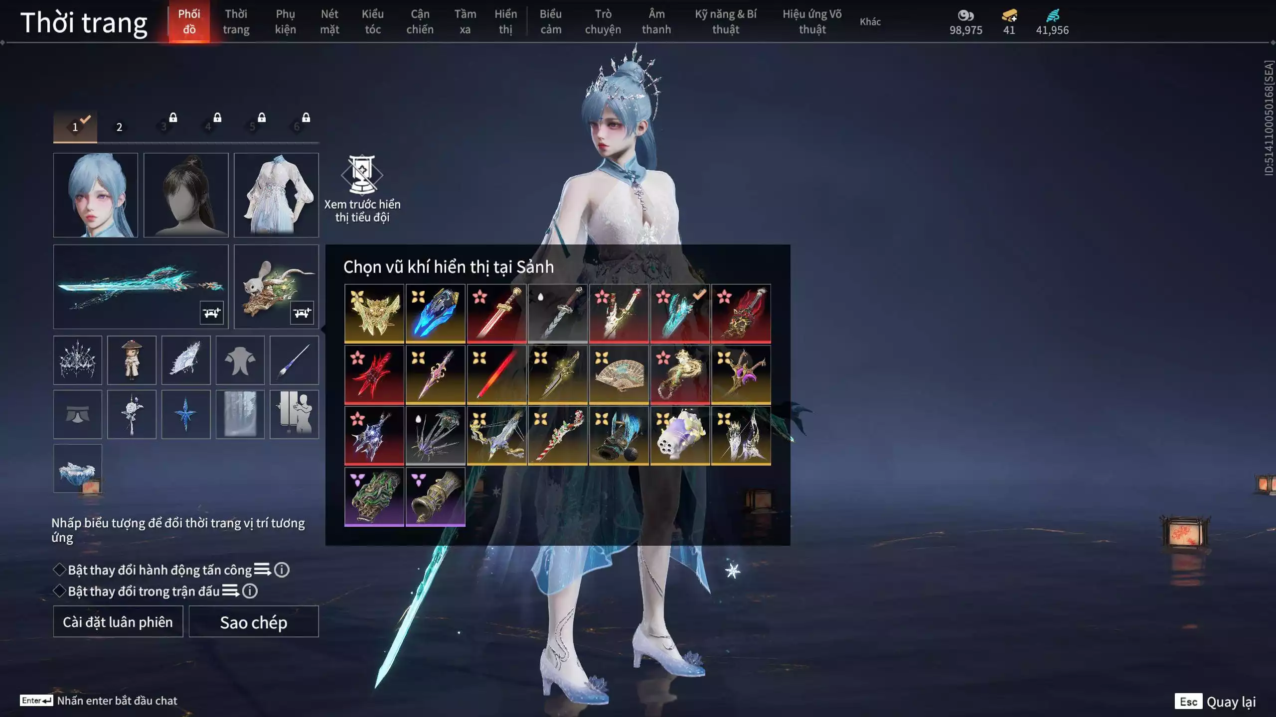 8 Vũ khí đỏ: Thái Đao Linh Hồ, Kiếm Thiếu Dương, Đại Đao Lang Vương, Tinh Đế, Long Tước, Song Long Chầu Nguyệt, Kích Phi Tướng, Kinh Bách Lý