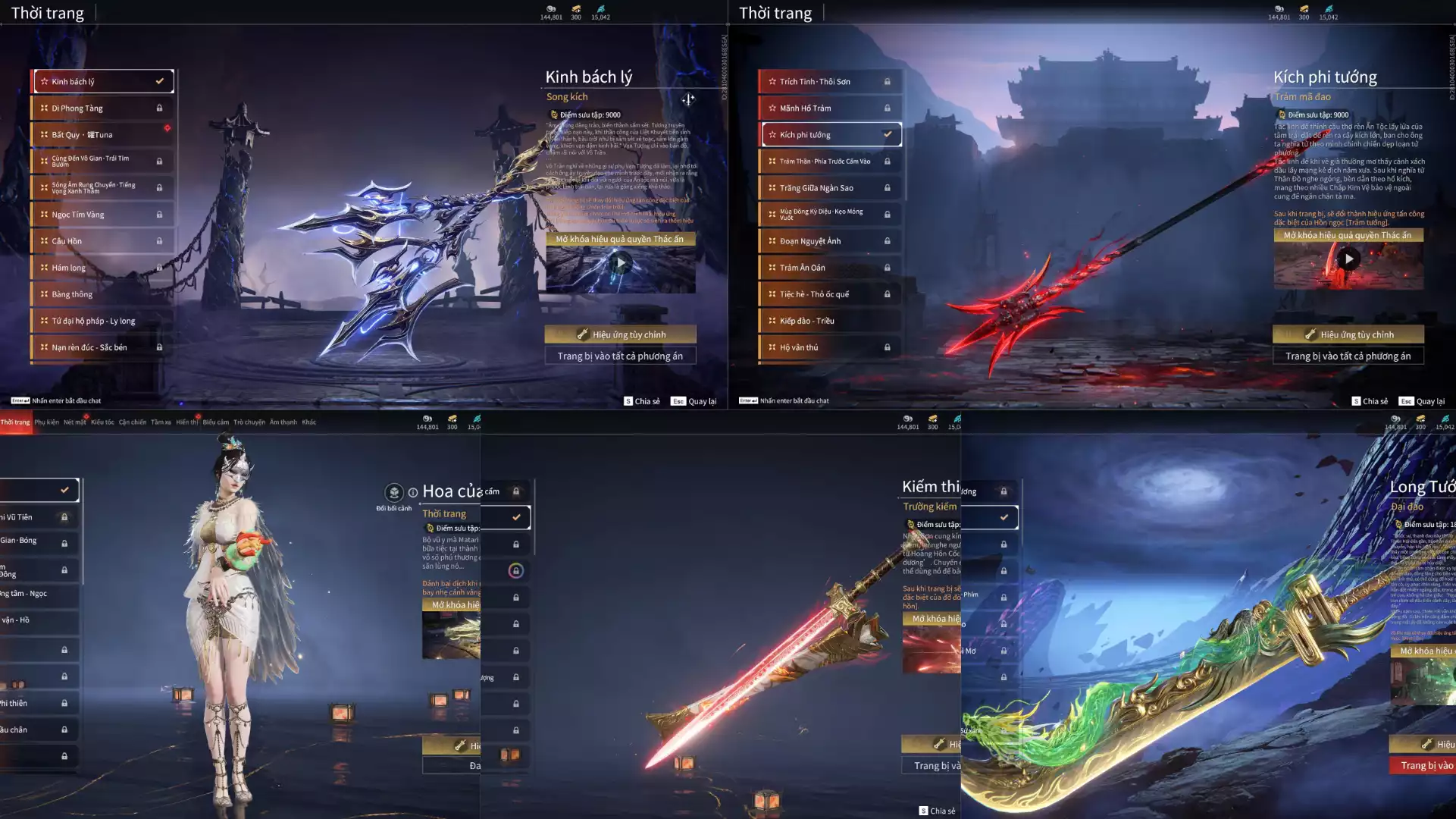 5 Skin đỏ: Kinh Bách Lý, Kiếm Thiếu Dương, Kích Phi Tướng, Long Tước, Hoa Của Cát