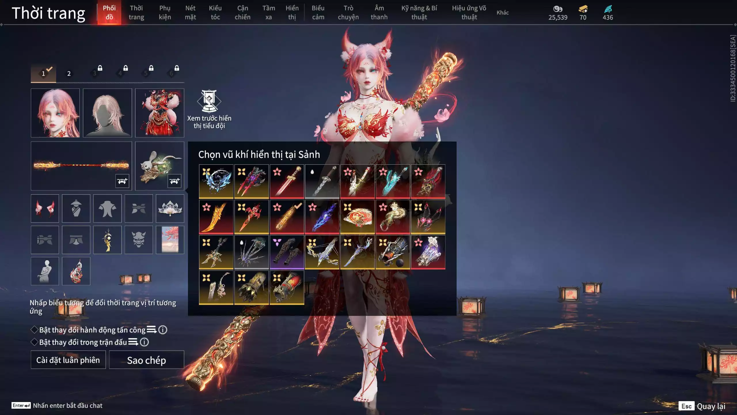 Skin nâng cấp: Gươm đỏ vo song-LV2, Tỏa hồn trảm oán-Lv2, Lâm thất dạ-LV3