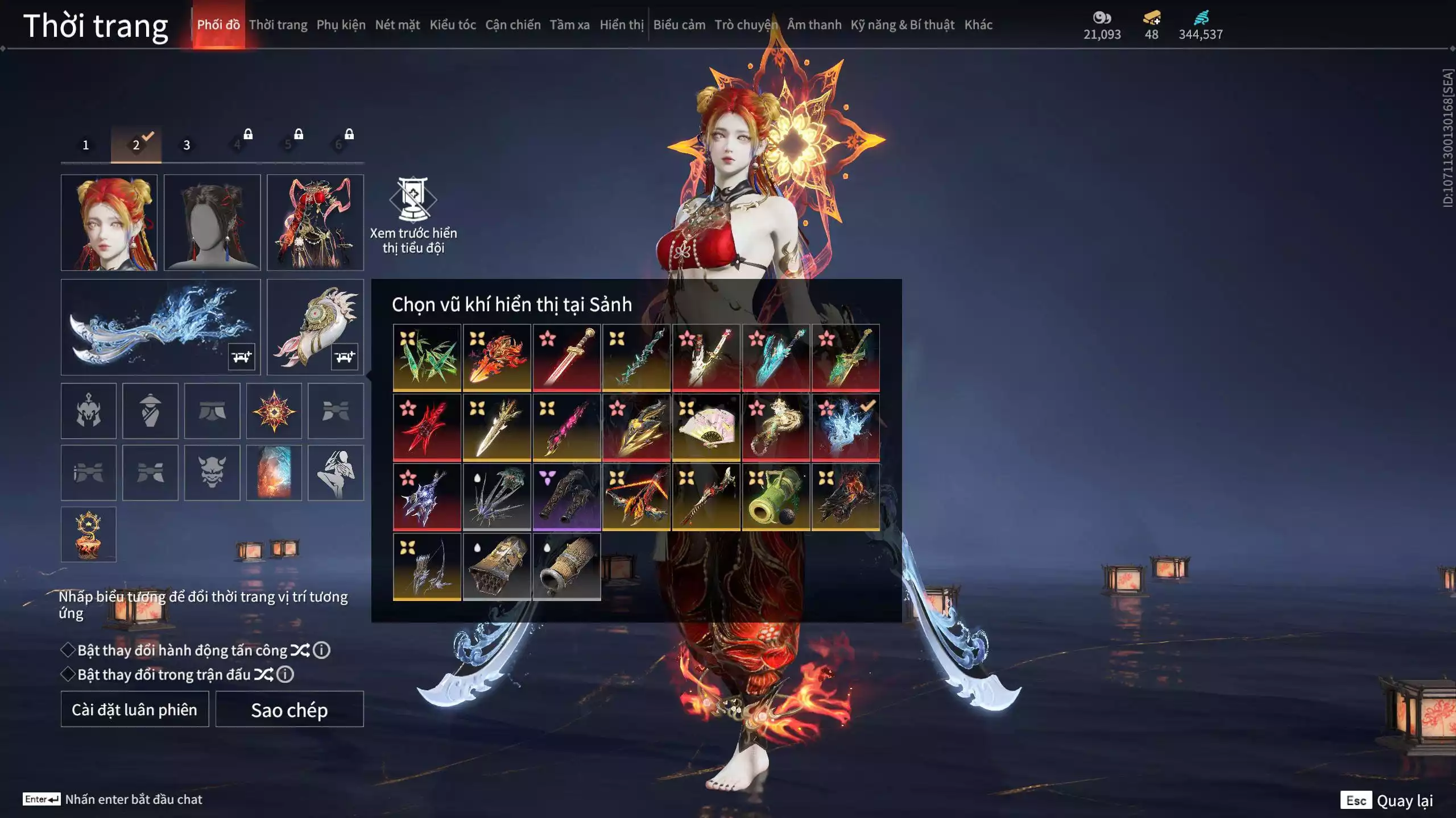 9 Vũ khí đỏ: Ngũ Hành Tướng (New Skin), Thái Đao Linh Hồ, Kiếm Thiếu Dương, Tinh Đế, Long Tước, Kích Phi Tướng, Song Long Chầu Nguyệt, Kinh Bách Lý, Rồng Ngẩng Đầu