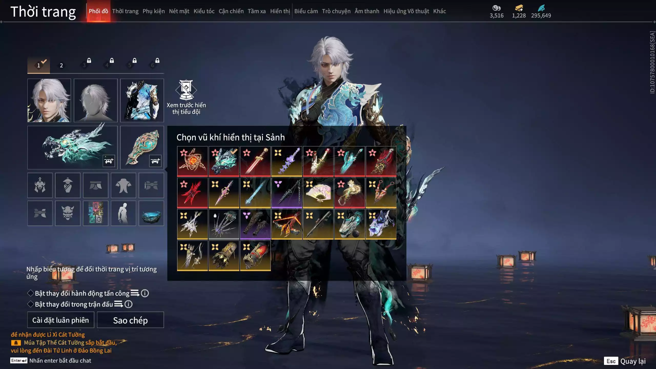 9 Vũ khí đỏ: Kỳ Lân Phách, Hỏa Luân, Thái Đao Linh Hồ, Kiếm Thiếu Dương, Đại Đao Lang Vương, Song Long Chầu Nguyệt, Kích Phi Tướng, Tinh Đế, Long Tước